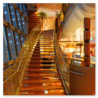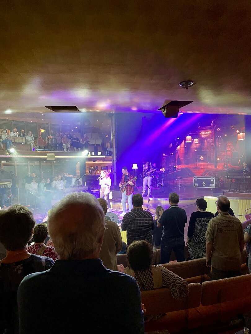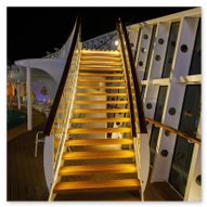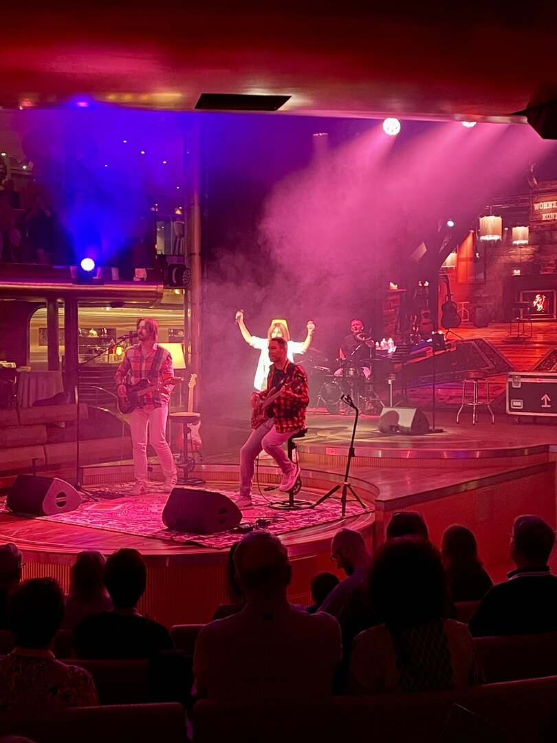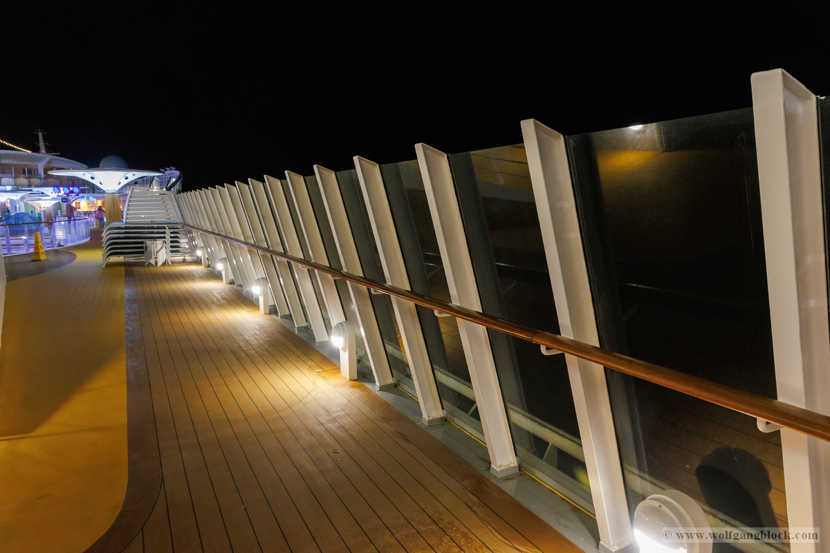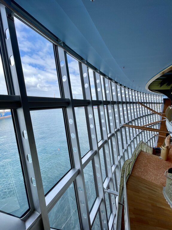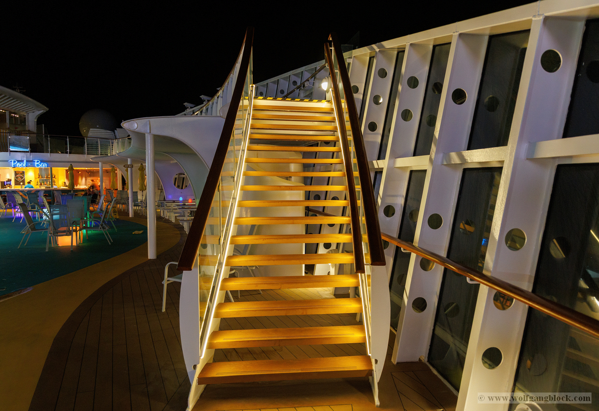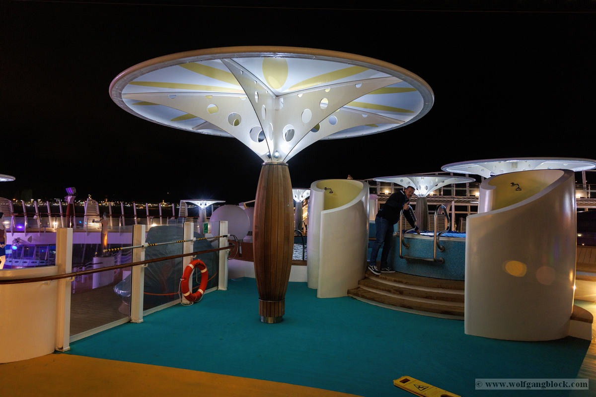 Nachdem wir unser Handgepäck verstaut und die Kabine kurz in Augenschein genommen hatten, hielt uns nichts mehr drinnen. Wir gönnten uns erst einmal einen ausgiebigen Rundgang über die Decks, um das Schiff kennenzulernen. Die Architektur im Inneren, insbesondere die weitläufigen Treppenhäuser, ist beeindruckend und verbindet die verschiedenen Erlebniswelten des Schiffs auf elegante Weise.