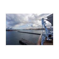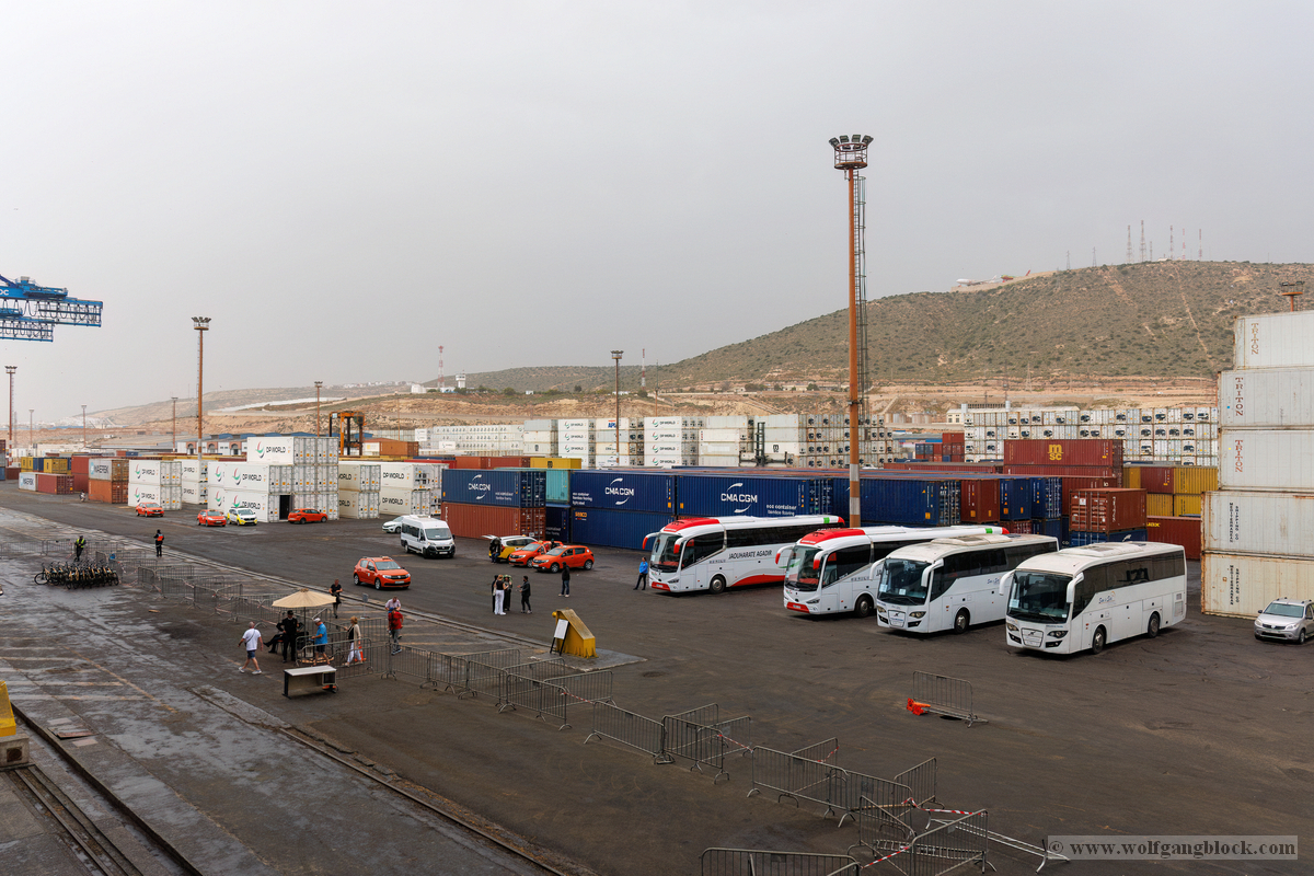Die Busfahrt vom Flughafen zum Hafen von Las Palmas dauerte etwa 30 Minuten und war im Grunde unsere erste kleine Sightseeing-Tour. Die Landschaft von Gran Canaria mit ihren Bergen und der vulkanischen Prägung zog an uns vorbei, bis schließlich die Kräne und Silhouetten des Hafens am Horizont auftauchten.