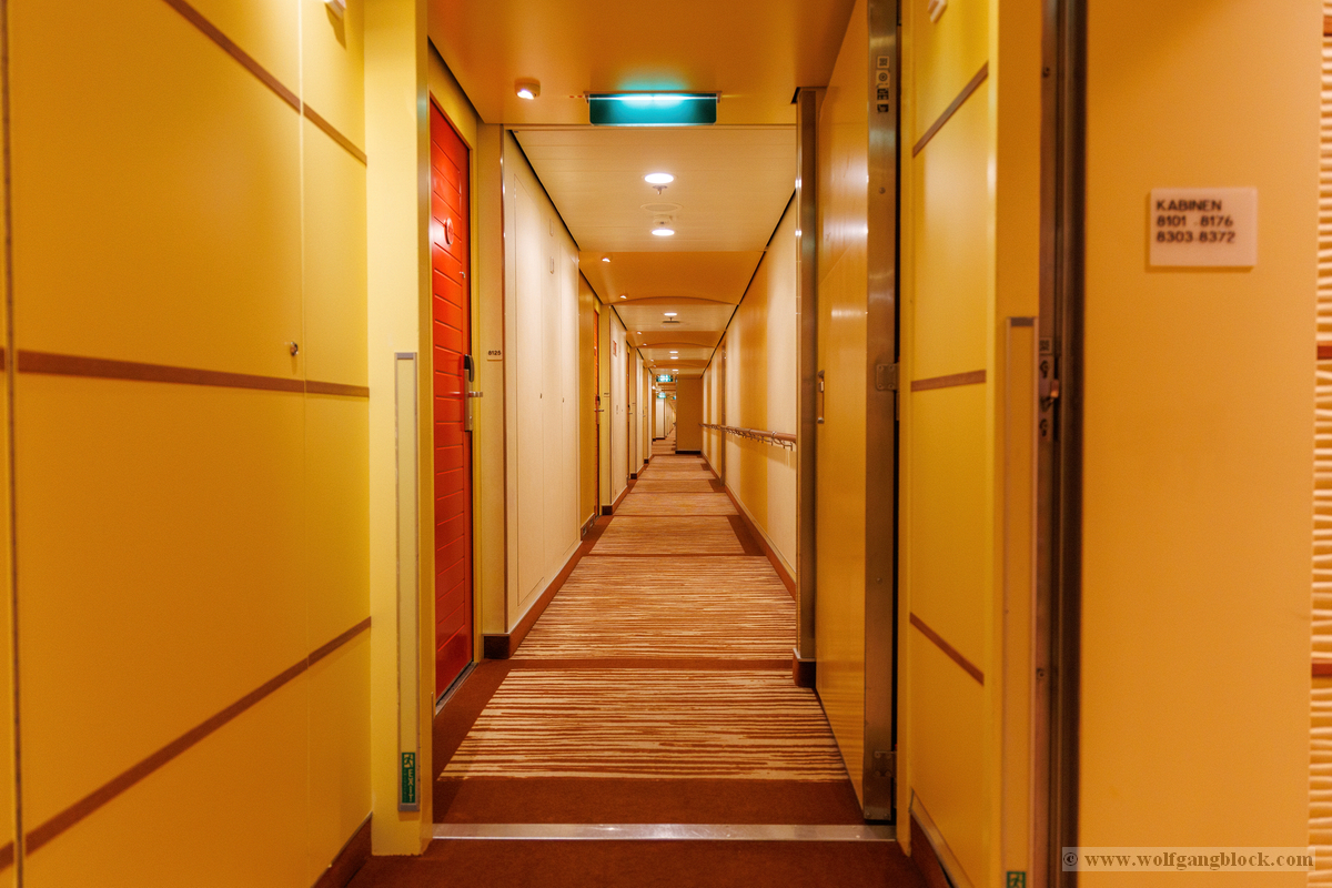 Unser erster Weg führte uns natürlich direkt auf Deck 8 zu unserer Kabine 8312. Es ist ein spannender Moment, wenn man zum ersten Mal durch die langen, scheinbar endlosen Kabinengänge läuft. Die rote Tür unserer Kabine markierte den Eingang zu unserem persönlichen Rückzugsort. Die Innenkabine machte einen super Eindruck – kompakt, funktional und vor allem: absolut ruhig. Genau das, was wir für einen erholsamen Schlaf brauchten.