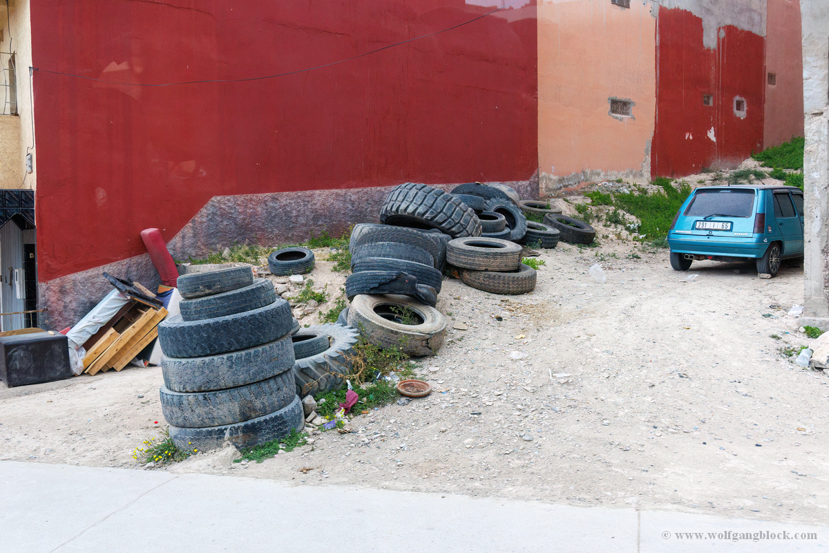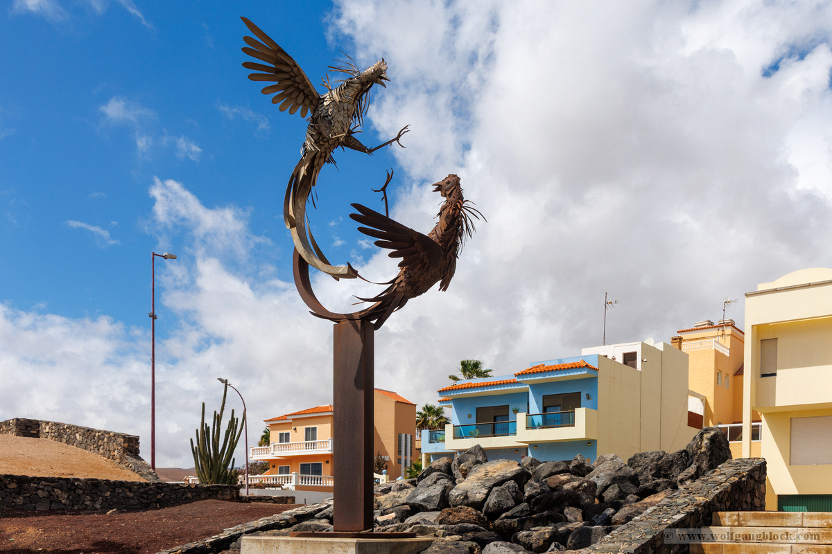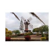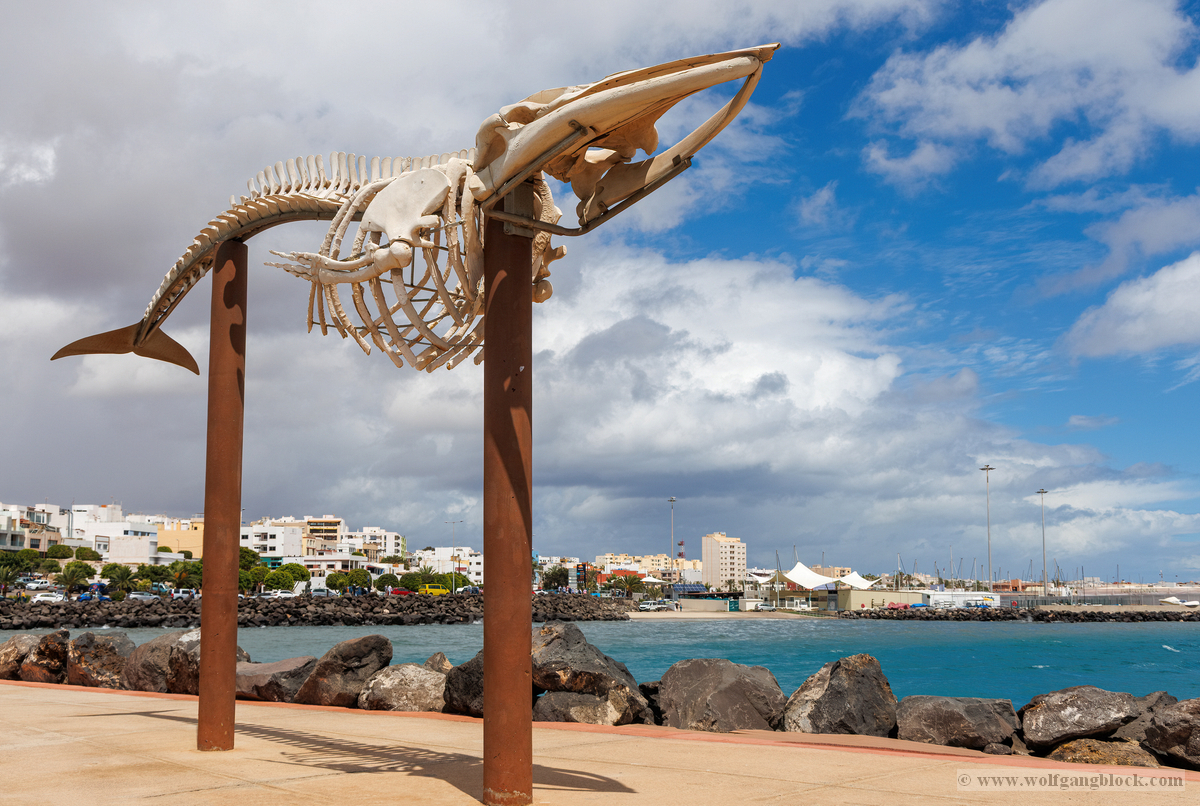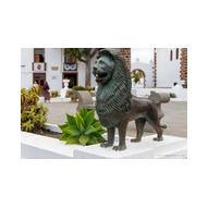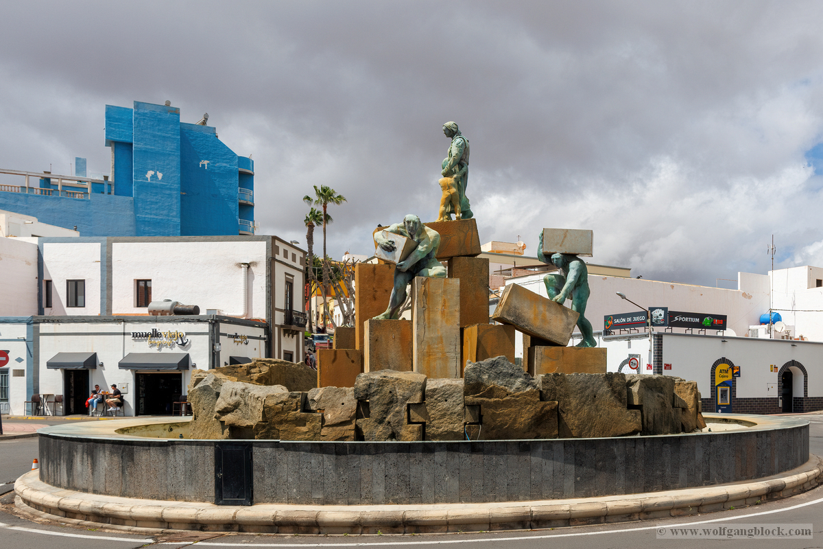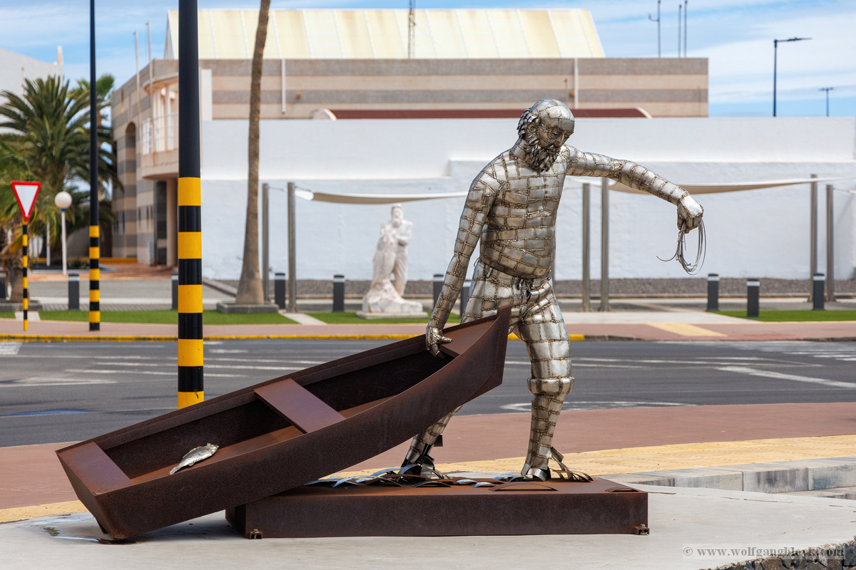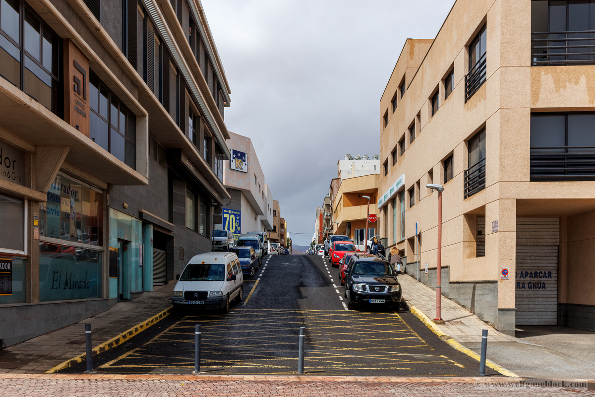 Nach der Infiltration von Lagomar setzte unsere Kolonne die Fahrt fort. Nächstes Ziel: Das historische Teguise, die ehemalige Hauptstadt der Insel. Wir hatten ein enges Zeitfenster von nur 30 Minuten – eine taktische Herausforderung für jeden Fotografen, aber genug Zeit, um die Essenz dieses geschichtsträchtigen Ortes zu sichern. Teguise empfing uns mit einer fast schon meditativen Ruhe und einer architektonischen Reinheit, die in jedem Pixel unserer Aufnahmen spürbar wurde.Schon am Ortsrand fiel unser Blick auf eine klassische Windmühle (Molino), deren hölzerne Flügel majestätisch gegen den wolkenverhangenen Himmel ragten. Sie ist ein stummer Zeuge der landwirtschaftlichen Vergangenheit Lanzarotes und ein perfektes Motiv, um die Harmonie zwischen traditioneller Technik und der rauen Natur festzuhalten. Besonders die Details der Holzkonstruktion und die Einbettung in die schwarze Vulkanerde boten spannende Kontraste, die wir durch das dichte Blattwerk der Palmen hindurch dramatisch inszenierten. Wir näherten uns dem Herzen des Ortes durch einen rustikalen Rundbogen aus braunem Vulkangestein. Dieser steinerne Torbogen gewährte uns einen ersten Blick auf die Plaza de la Constitución und diente gleichzeitig als natürlicher Rahmen für das Treiben auf dem Platz. Ein kleines Schild an einer der strahlend weißen Wände wies stolz darauf hin, dass Teguise zu den „Pueblos más bonitos de España“ zählt – eine Auszeichnung, die wir angesichts der symmetrischen Ästhetik sofort bestätigen konnten. Die Plaza de la Constitución selbst ist ein Musterbeispiel für die Gestaltungskraft Lanzarotes. Ein schlichtes, aber wirkungsvolles Schild mit der Aufschrift „PLAZA DE LA CONSTITUCION“ zierte eine der weißen Mauern, direkt neben einer dunklen Holztür und einer einladenden Bank. Diese Reduktion auf das Wesentliche – Weiß, Braun und das raue Schwarz des Lavagesteins an den Gebäudeecken – zieht sich durch das gesamte Dorf. Ein besonderer Blickfang an der Plaza war die bronzene Löwenstatue, die auf einem schlichten weißen Sockel thronte. Das Maul zum Brüllen geöffnet, bildete die dunkle Patina des Metalls einen scharfen Kontrast zum hellen Mauerwerk im Hintergrund. Direkt daneben lieferte das Casa-Museo del Timple erstklassige forensische Details: Die dunkle, kunstvoll geschnitzte Holztür und die perfekt ausgerichteten Fensterrahmen hoben sich kontrastreich von der makellos weißen Fassade ab. Ein weiteres kulturelles Zeugnis der Inseltradition entdeckten wir inmitten der kargen Aloe-Vera-Pflanzen: Die bronzene Statue eines Tamborilero (Tamburin-Tänzers). Die gebeugte Haltung des Musikers und die Detailtiefe der Skulptur fingen die lebendige Folklore Lanzarotes perfekt ein – ein stilles, aber kraftvolles Motiv vor der Kulisse der weißen Häuserfronten. Den architektonischen Fixpunkt bildete die Kirche Nuestra Señora de Guadalupe. Der imposante Glockenturm mit seinem dunklen Steinmauerwerk und der markanten Kuppel ragte über die Palmenwipfel hinaus. Besonders faszinierend war ein Detail an der Kirchenwand: Ein Portal aus rötlichem Lavagestein, über dem zwei kreisförmige Fenster wie Augen wirkten – eine fast schon anthropomorphe Fassade, die uns zum Innehalten zwang. Der Kontrast zwischen dem grauen Himmel, dem dunklen Stein und dem strahlenden Weiß der umliegenden Gebäude war fotografisch extrem reizvoll. Selbst moderne Elemente wie der Eingang einer CaixaBank, der in einen massiven, roten Gesteinsrahmen in eine alte Mauer eingelassen war, fügten sich nahtlos in das Bild ein und zeigten, wie Tradition und Moderne hier koexistieren. Die schmalen Gassen mit ihren Kopfsteinpflastern und den leuchtend grünen Türen lieferten uns immer wieder neue Perspektiven. Besonders das Artesanía Lanzarotena, mit seinen geschnitzten Holzfiguren an der Fassade und dem satten Grün der Tür, war ein Beweis für die lebendige Handwerkstradition des Ortes. Auch das Restaurant Acatife mit seinem markanten schwarzen Schriftzug auf weißem Grund fügte sich perfekt in die grafische Ordnung von Teguise ein. Jede Ecke schien wie für den Sucher der R6 II komponiert zu sein. Teguise fühlte sich an wie eine Zeitkapsel. Nach 30 Minuten intensiver Dokumentation war es Zeit für den Rückzug zum Jeep. Die Akkus der Kameras glühten, doch die Speicherkarten waren um einige wertvolle Beweisstücke reicher.