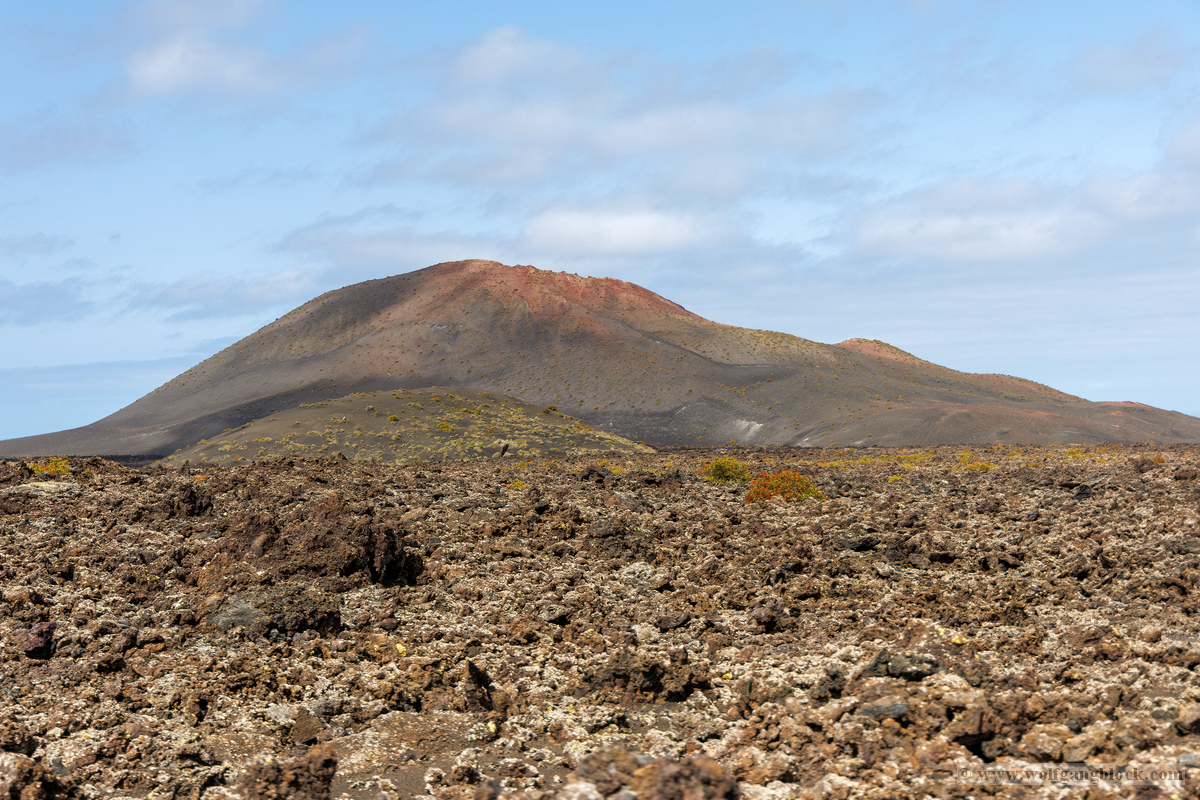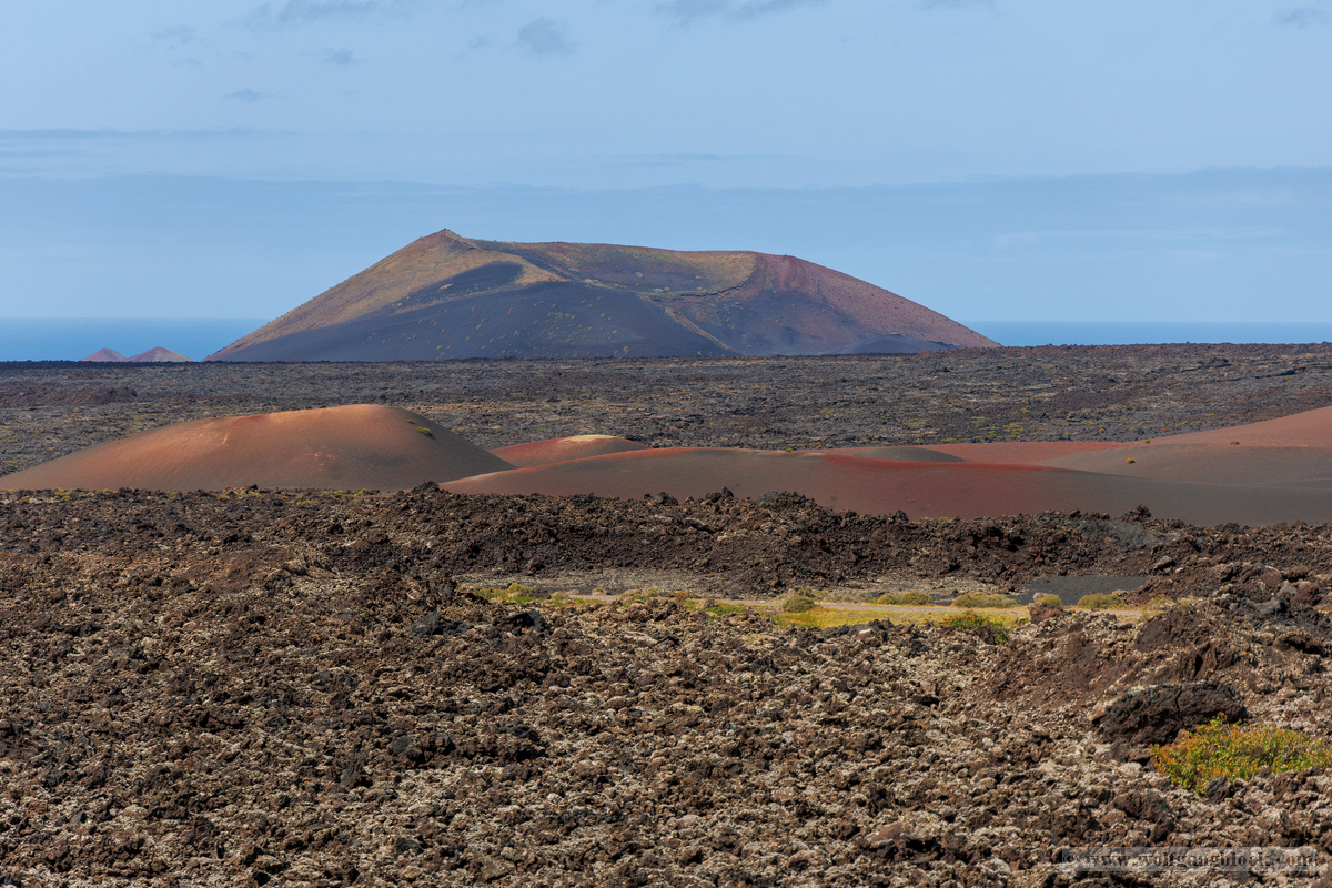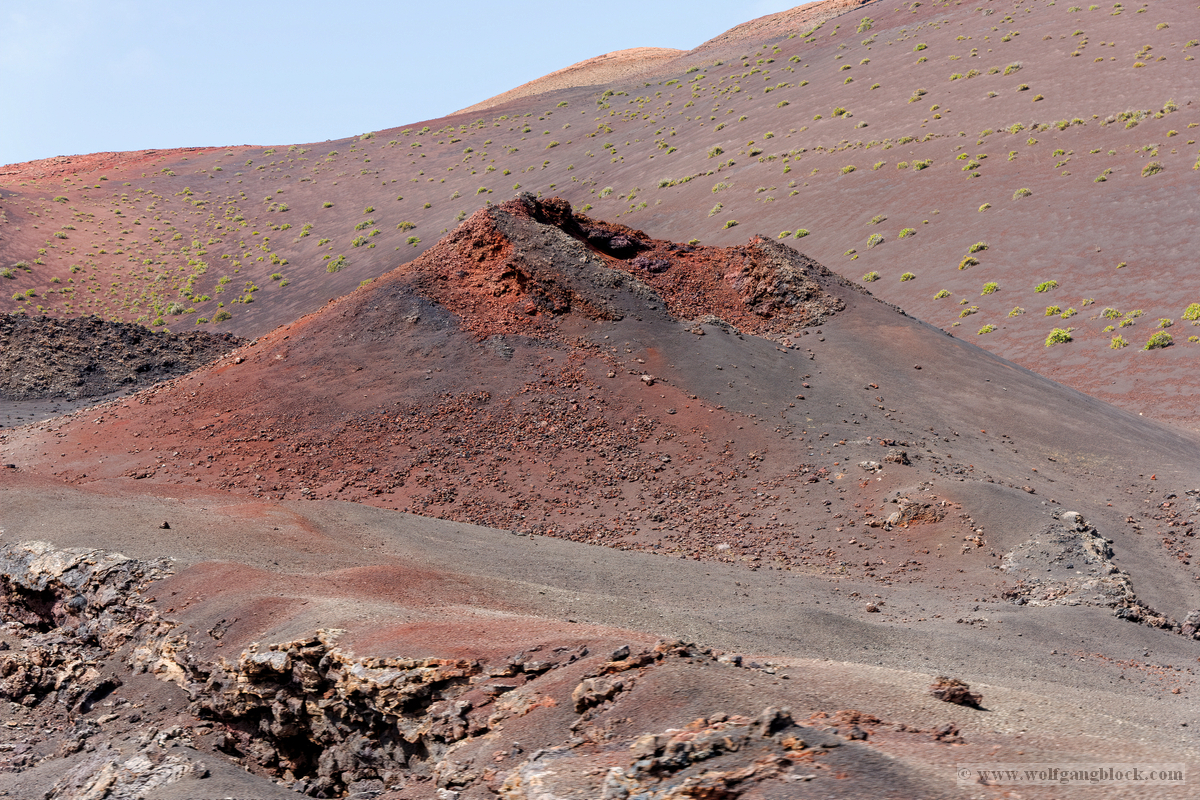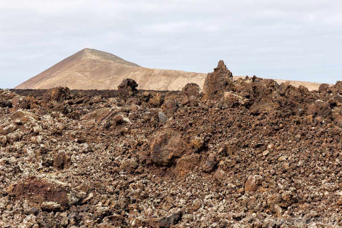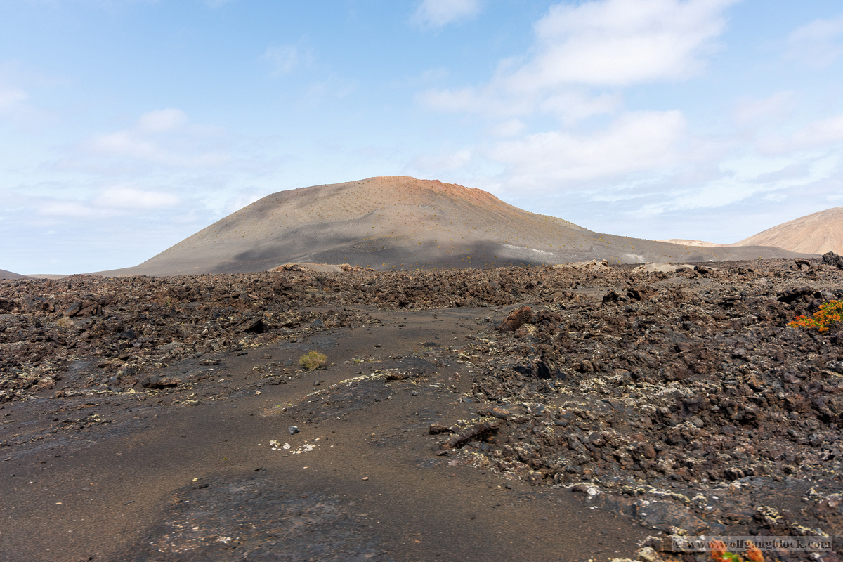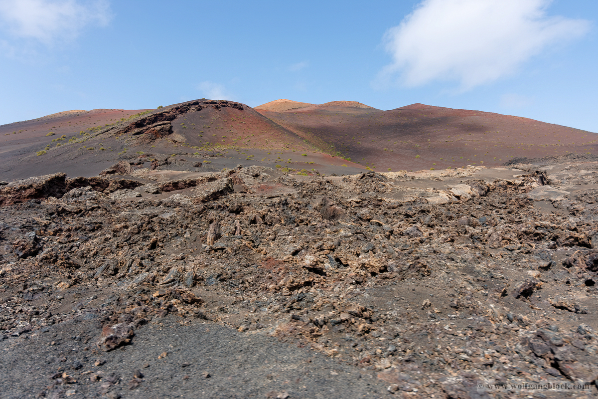 Nach dem theoretischen Teil begaben wir uns direkt in das „Malpaís“ – das schlechte Land rund um das Besucherzentrum. Hier zeigt Lanzarote sein wahres Gesicht. Die weiten Lavafelder erstrecken sich bis zum Horizont, eine Wüste aus scharfkantigem Gestein. Im Hintergrund ragen die majestätischen Vulkankegel in den Himmel, deren Flanken in Rot- und Brauntönen schimmern. Wir nutzten die Gelegenheit für intensive Detailaufnahmen der Lava-Formationen. Die Strukturen sind faszinierend komplex: Manche Lavabrocken weisen eine extrem feinporige, fast schaumartige Oberfläche auf, die Zeugnis von den entweichenden Gasen während der Eruption ablegt. Diese Texturen wirken wie abstrakte, moderne Skulpturen. An anderen Stellen haben sich massive Gesteinshaufen aufgetürmt, die teilweise mit hellen Flechten oder gelblichen Ablagerungen überzogen sind. Diese kleinen Farbtupfer bilden einen harten Kontrast zum dunklen, rauen Gestein und zeigen, wie sich das Leben nach und nach seinen Platz in dieser lebensfeindlichen Umgebung zurückerobert. Jedes Foto hier ist eine Momentaufnahme der erstarrten Zeit, in der die rohe Energie der Erde in bizarren Formen festgehalten wurde.