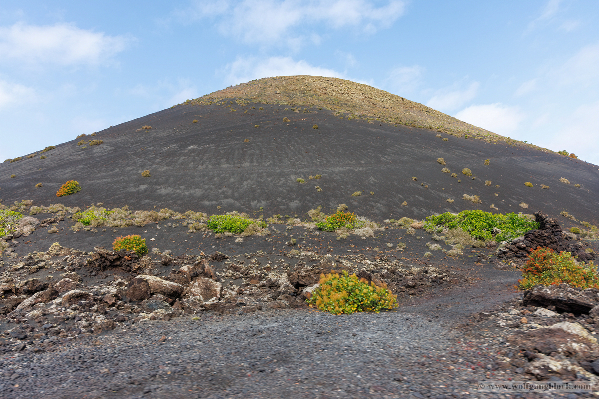 Ein besonderes Privileg dieser Tour war mein Logenplatz: Ich durfte im Jeep ganz vorne sitzen. Das ermöglichte mir eine völlig ungehinderte Sicht auf die vorbeiziehende Landschaft. Bei heruntergelassener Seitenscheibe konnte ich direkt aus dem fahrenden Wagen heraus die majestätischen Vulkane fixieren. Das Auslösegeräusch der Cam und das satte Grollen des Allradantriebs bildeten die akustische Kulisse für eine Fotoserie, die Lanzarote in einem völlig untypischen Licht zeigte. Normalerweise dominiert auf der Insel das harte Schwarz und Braun der Lava, doch wir hatten ein unglaubliches Timing. Da es in den Wochen zuvor ungewöhnlich viel geregnet hatte, war die Natur förmlich explodiert. Die sonst so kargen Flanken der Vulkane waren mit einem zarten, smaragdgrünen Teppich aus frischen Gräsern und Moosen überzogen. Von meinem Platz im „Cockpit“ aus hielt ich das Spiel der Farben fest – das tiefe Anthrazit des Aschebodens gegen das vitale Hellgrün der neuen Vegetation. Jede Kurve der Straße eröffnete neue Perspektiven. Die Dynamik der Fahrt verlieh den Bildern eine zusätzliche Tiefe. Besonders beeindruckend war die Fahrt entlang der geschwungenen Bergstraßen: Hier bildete der dunkle Asphalt einen scharfen, grafischen Kontrast zu den leuchtend grünen Hängen, die sich wie weiche Samtkissen über das schroffe Gestein legten. Aus dem fahrenden Jeep heraus fixierten wir die majestätischen Krater, deren Ränder durch den feinen Bewuchs fast unwirklich weich gezeichnet wurden. Lanzarote präsentierte sich uns nicht als tote Steinwüste, sondern als lebendiger Organismus, der jeden Tropfen Wasser in reine visuelle Energie verwandelte. Es war eine technische Herausforderung, die Schärfe bei voller Fahrt beizubehalten, doch der Autofokus der R6 II krallte sich unerbittlich an die Strukturen der grünen Vulkanflanken. Diese Aufnahmen dokumentieren einen seltenen Moment der Regeneration, den man so nur selten auf der „Feuerinsel“ zu Gesicht bekommt.