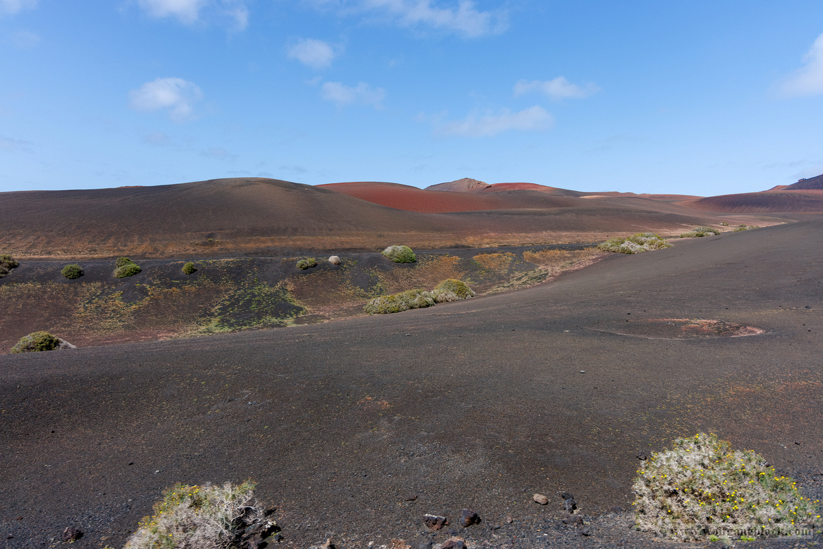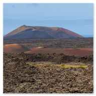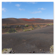 Kurz vor dem Verlassen der Kernzone des Nationalparks begegneten wir noch einem weiteren Wahrzeichen Lanzarotes: Den Dromedaren. Lange Karawanen von Tieren, die Touristen durch die sanften Aschehügel tragen, zogen am Straßenrand vorbei. Die bunten Sättel bildeten einen tollen farblichen Akzent zur sonst eher monochromen Umgebung der Timanfaya-Region. Auch diese Szenen konnten wir dank der strategischen Sitzposition im Jeep direkt aus dem Wagen heraus dokumentieren.