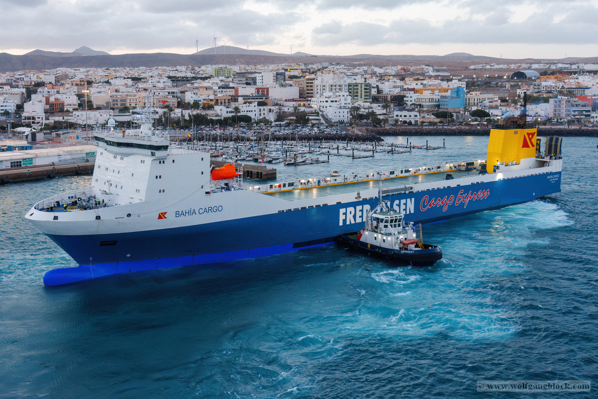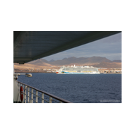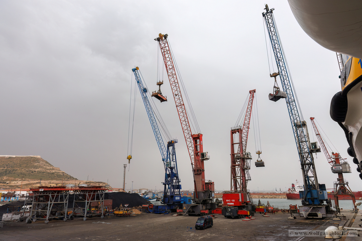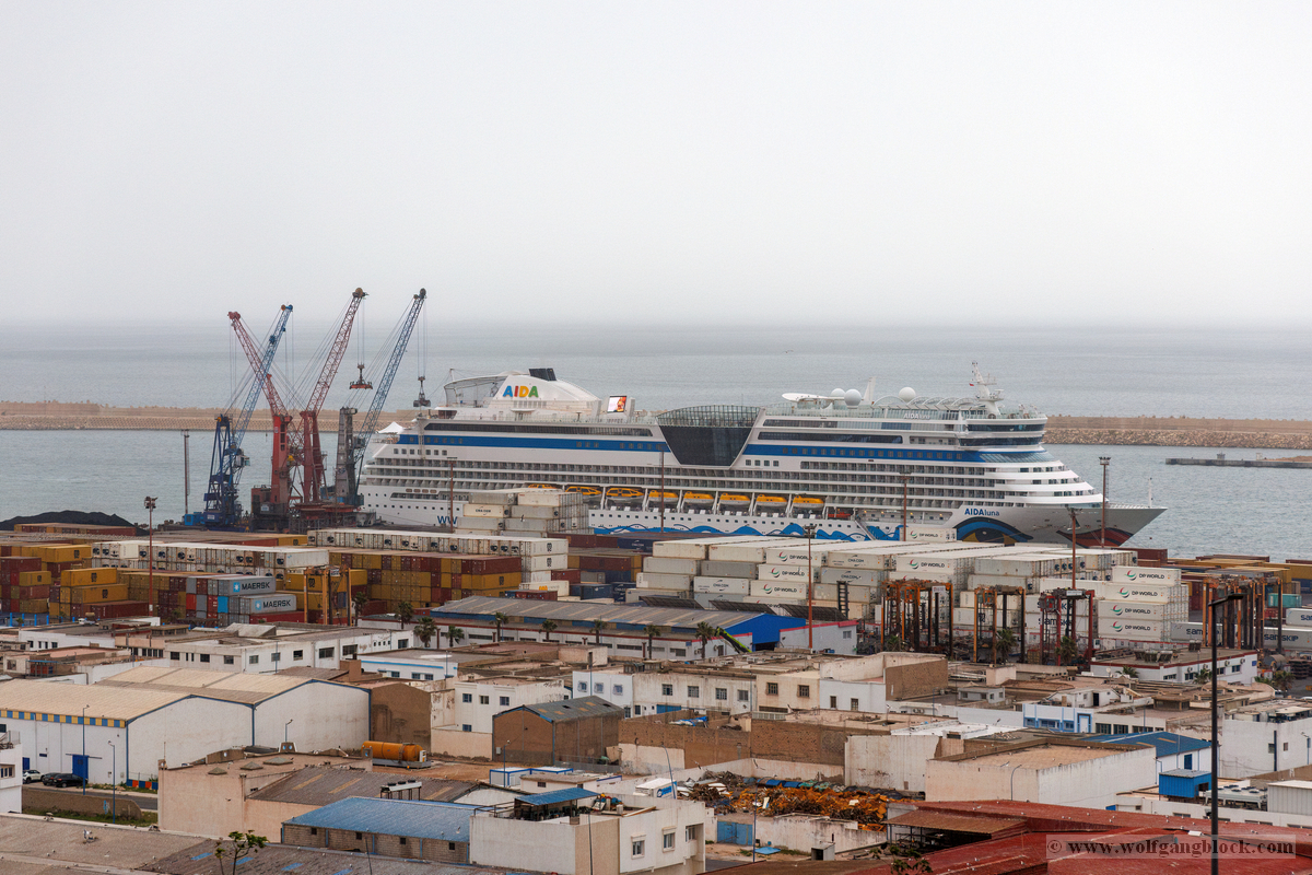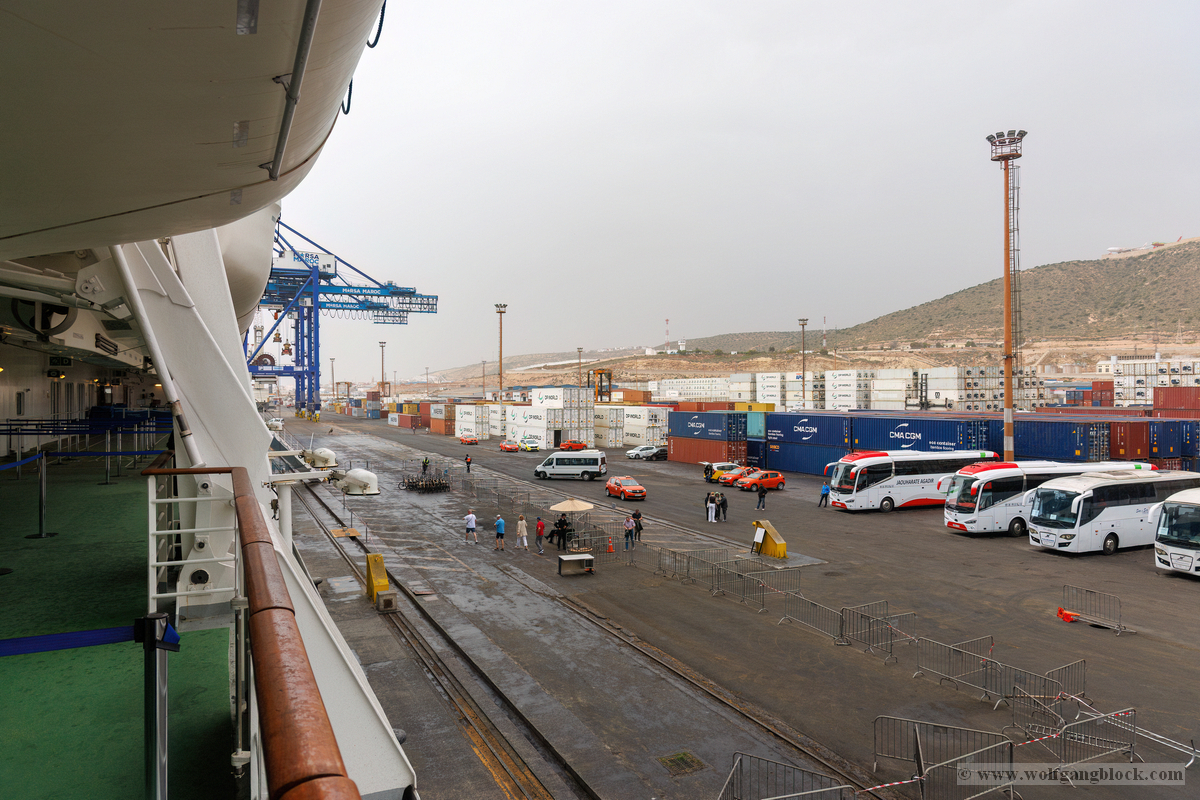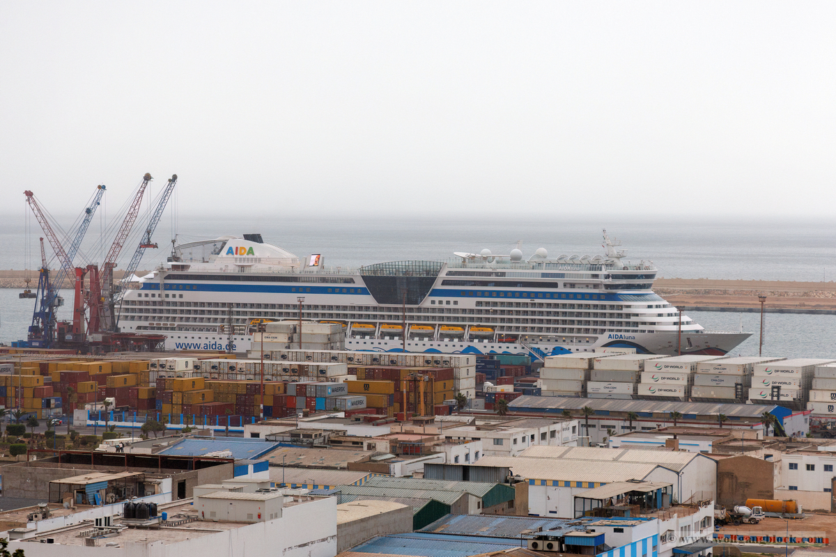 Während wir unser Bier genossen, setzten die ersten Vorbereitungen für das Ablegen ein. Das Hafenbecken von Arrecife bot eine geschäftige Kulisse. Direkt gegenüber lag die „MSC Musica“ wie ein mächtiger, weißer Wall an der Pier. Die Kamera hielt den Kontrast zwischen den eleganten Linien der Kreuzfahrtschiffe und der rauen Funktionalität des Containerterminals fest. Kräne ragten wie eiserne Skelette in den Himmel, während Frachter wie die „WEC Van Gogh“ beladen wurden – ein industrielles Panorama vor den fernen Vulkankegeln Lanzarotes. Dann lösten sich die schweren Taue. Mit einer sanften Vibration der Maschinen begann die Luna, sich von der Kaimauer zu entfernen. Wir passierten die lange Mole, die den Hafen gegen die Brandung des Atlantiks schützt. Von unserem Platz an Deck beobachteten wir, wie der Hafen und die Stadt Arrecife langsam kleiner wurden. Das Licht des späten Nachmittags tauchte die Küste in ein weiches Goldbraun. In der Ferne zeichneten sich die Silhouetten der Feuerberge ab, die wir erst Stunden zuvor mit dem Jeep durchquert hatten. Es war ein Moment des Innehaltens: Lanzarote verschwand langsam am Horizont, während der Bug der Luna bereits Kurs auf das nächste Abenteuer nahm. Das Ziel ist nun klar definiert: Agadir, Marokko. Vor uns liegt eine Nacht auf dem offenen Atlantik – Zeit, die Erlebnisse zu verarbeiten und die Akkus für den Orient aufzuladen.