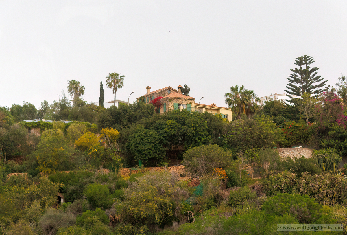 Schon auf dem Weg ins Landesinneren begegneten wir dem Erbe von César Manrique. Inmitten eines Kreisverkehrs ragte eine gewaltige, silberne Windskulptur in den bewölkten Himmel. Das filigrane Zusammenspiel aus Metallkugeln und Ringen, die sich lautlos im stetigen Passatwind drehten, war ein faszinierendes Fotomotiv für die Weitwinkel-Optik unserer R6 II. Ein Symbol für die Symbiose aus Technik und Natur, die diese Insel so einzigartig macht. Die Fahrt führte uns durch karge Landschaften, in denen schneeweiße Häuser wie helle Tupfen auf der dunklen Vulkanerde leuchteten. Von erhöhten Aussichtspunkten aus dokumentierten wir das Panorama: Sanfte Vulkankegel am Horizont, karge Felder und im Vordergrund moderne Villen mit leuchtend blauen Pools – ein architektonischer Kontrast, der die forensische Präzision unserer Sensoren forderte. Ein absoluter Höhepunkt der Infiltration war der Besuch von Lagomar. Dieses legendäre Anwesen, das einst von César Manrique entworfen und angeblich von Schauspieler Omar Sharif bei einem Bridge-Spiel verloren wurde, ist direkt in die Flanken eines alten Steinbruchs gebaut. Die organischen Formen der weißen Mauern verschmelzen nahtlos mit dem rötlichen Lavagestein. Es fühlte sich an wie ein Besuch in einem Bond-Bösewicht-Versteck – ein Labyrinth aus Höhlen, Tunneln und üppigen Palmen, das architektonisch in einer ganz eigenen Liga spielt. Jedes Foto hier war ein Beweis für die Kraft der menschlichen Kreativität inmitten einer lebensfeindlichen Natur.