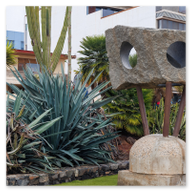 Neben seiner botanischen Pracht ist der Parque García Sanabria auch eine beeindruckende Freiluft-Galerie. Das visuelle und architektonische Zentrum bildet das monumentale Monumento a García Sanabria. Ein gewaltiger, geometrischer Obelisk ragt hier in das Azurblau des Himmels empor, umgeben von einem kreisförmigen Wasserbecken. Besonders faszinierend ist die Symbolik dieses Ortes. Am Fuße des Denkmals thront die weiße Steinstatue der „Fecundidad“ (Fruchtbarkeit), die wie eine stille Wächterin über das glitzernde Wasserspiel wacht. Im warmen Licht des späten Nachmittags boten die aufspringenden Fontänen und die harten Schatten der Architektur dramatische Kontraste für unsere Kameras. Über den gesamten Park verteilt stießen wir zudem auf zahlreiche weitere Skulpturen der „Exposición Internacional de Escultura en la Calle“. Jedes dieser Kunstwerke tritt in einen ständigen Dialog mit der Natur und macht den Spaziergang zu einer Entdeckungsreise durch die Kunstgeschichte der Moderne. Auf einer der alten Steinbänke sitzend, umgeben von Geschichte und Kunst, ließen wir die Seele baumeln. Ein wahrlich traumhafter Ort der Inspiration.