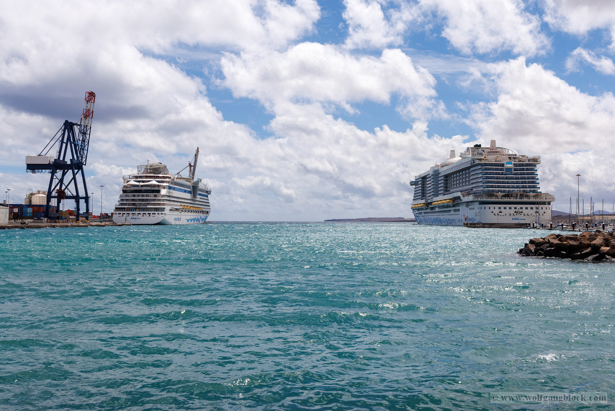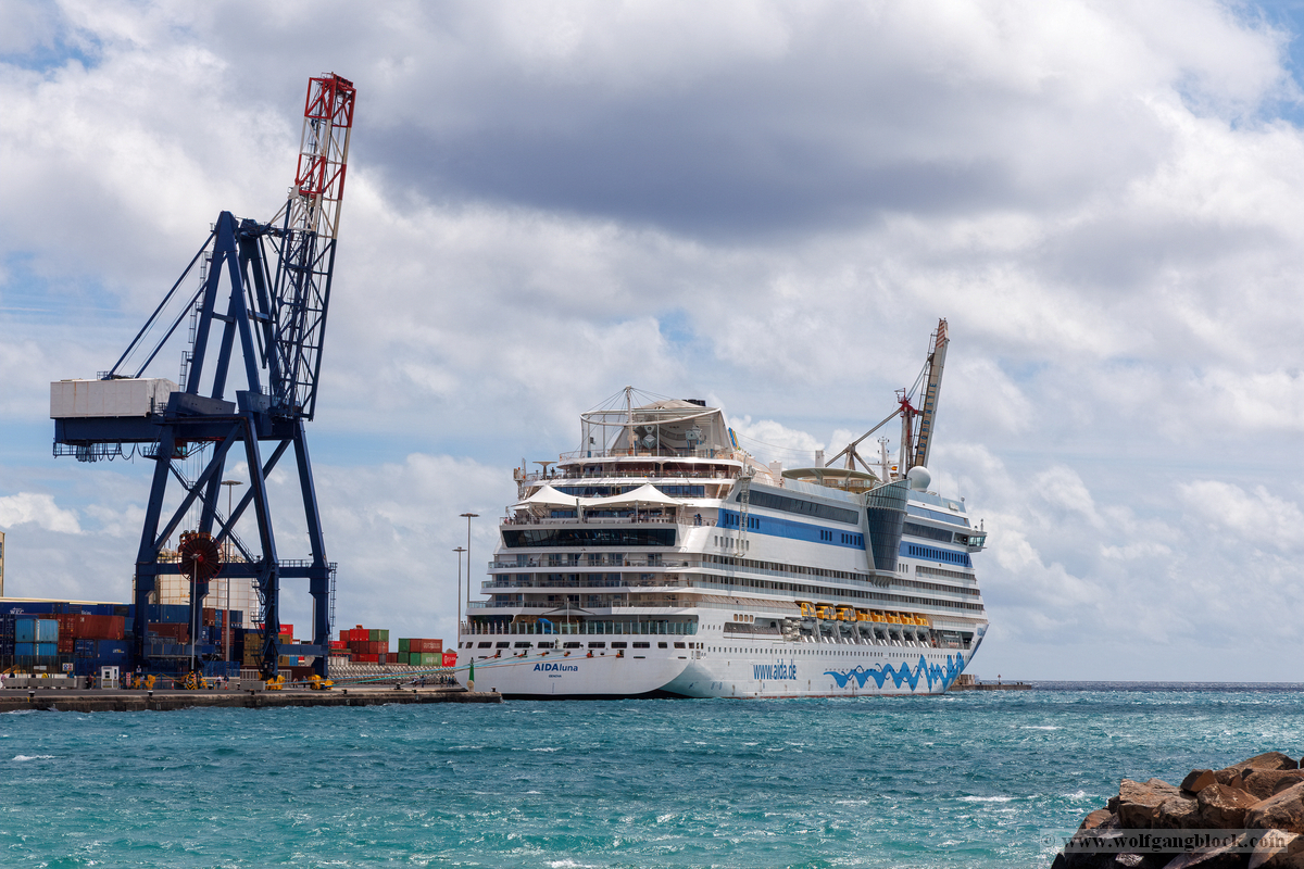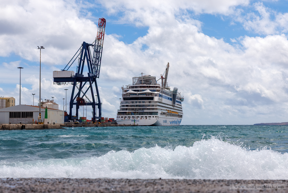 Nach einem intensiven Tag auf den staubigen Pisten und in den grünen Tälern Lanzarotes steuerten unsere Jeeps schließlich wieder den Hafen von Arrecife an. Das Wetter hätte für den Abschluss dieser Etappe nicht besser sein können: Die Wolken hatten sich verzogen und machten Platz für ein intensives Azurblau, das die AIDAluna an der Pier förmlich leuchten ließ.
