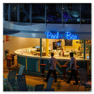 Was wäre eine Ankunft auf dem Schiff ohne das erste offizielle Kaltgetränk unter freiem Himmel? Nachdem wir uns einen Überblick verschafft hatten, führte uns unser Weg direkt zur Pool Bar. Hier zahlte sich unser Comfort Deluxe Paket zum ersten Mal so richtig aus: Kein Hantieren mit Bargeld, kein Abwiegen der Kosten – einfach die Bordkarte zücken und den Moment genießen.
