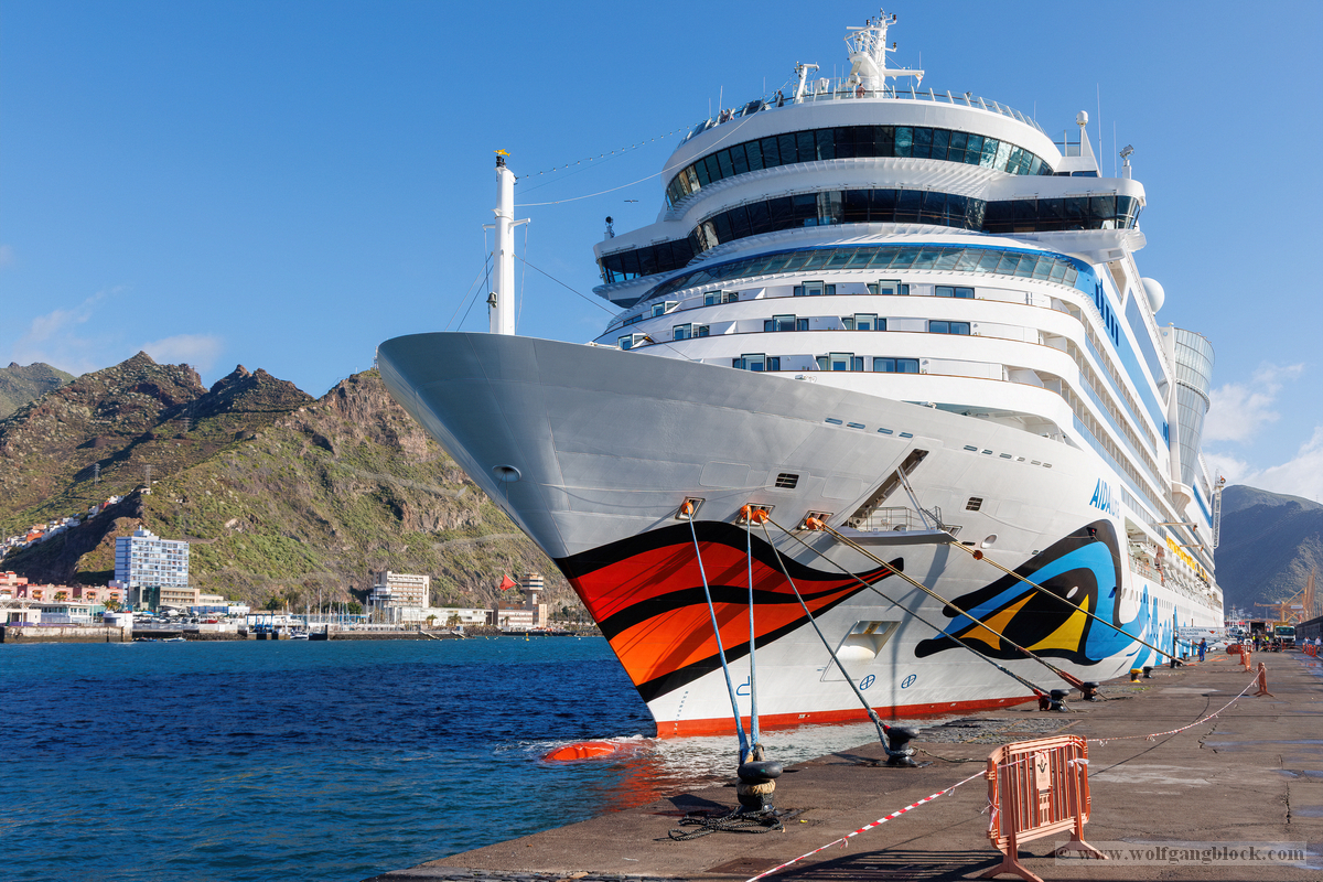 Mit dem Verlassen des Parks änderte sich die Szenerie erneut. Santa Cruz zeigte uns auf dem Weg zurück zur Küste seine ganze urbane Bandbreite. Den Auftakt machte ein herrlicher Fotospot: Mitten in einem farbenprächtigen Blumenbeet entdeckten wir die Bronzeskulptur eines springenden Fisches (Pescado), die wie ein Wächter vor einem mächtigen, uralten Drachenbaum (Drago) thronte. Es ist dieses Zusammenspiel aus kanarischer Urgewalt und künstlerischer Verspieltheit, das uns immer wieder fasziniert. Wir tauchten ein in die belebten Fußgängerzonen der Oberstadt. Hier mischte sich das nostalgische Flair des eleganten Musikpavillons (Quiosco), dessen filigrane Eisenstruktur im Schatten riesiger Lorbeerbäume fast schon wie ein Relikt aus einer anderen Zeit wirkte, mit dem modernen Puls der Hauptstadt. Die Gassen wurden lebendiger, die Cafés füllten sich, und unter den weißen Sonnenschirmen genossen die Menschen ihre „Cañas“ im goldenen Licht des späten Samstags. Besonders beeindruckend war der Marsch durch die architektonischen Schluchten. In der Calle San Lucas und den angrenzenden Straßen boten sich uns grafische Meisterwerke: Das harte Licht schnitt tiefe Schatten in die Fassaden, die in kräftigem Gelb, Orange und Weiß erstrahlten. Der Blick steil nach oben offenbarte kunstvolle Balkone und prächtige Gesimse, die von der wohlhabenden Geschichte der Stadt zeugen. Mittendrin immer wieder das moderne Leben – grüne ONCE-Lottokioske, farbenfrohe Murals und die markante Beschilderung von Bars wie dem „Snuupy“. Ein krasser Kontrast erwartete uns auf der mondänen Shopping-Meile. Hier säumen die glänzenden Schaufenster von Luxusmarken wie Valentino, Dior und Dolce & Gabbana die hellen, perfekt gepflasterten Wege. Es ist die Welt des schönen Scheins, die wir im Vorbeigehen dokumentierten. Doch nur wenige Meter weiter hielten wir inne für einen Moment echter Street-Photography: Ein älterer Herr ruhte im Schatten einer Gebäudewand, unbeeindruckt vom Trubel der Konsumwelt – ein stiller, ungeschminkter Moment des Alltags, der dem glatten Bild der Luxusmeile eine menschliche Tiefe verlieh. Schließlich öffnete sich der Blick am Ende einer weiten Allee. Dort, wo die hohen Gebäude der Stadt in Richtung Hafen abfallen, sahen wir sie endlich wieder: Unsere AIDAluna. Sie lag wie ein vertrauter Anker am Ende der Straßenschlucht, die weiße Bordwand strahlte im sanften Nachmittagslicht. Mit brennenden Füßen, aber einer prall gefüllten Speicherkarte voller „Licht-Magie“ und menschlicher Geschichten, legten wir die letzten Meter zur Pier zurück.