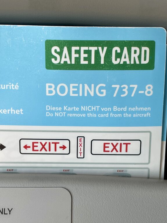 Ein viereinhalbstündiger Flug kann lang werden, deshalb hatten wir strategisch vorgesorgt und die XL-Sitze am Notausgang reserviert. Die zusätzliche Beinfreiheit ist bei dieser Flugdauer kein Luxus, sondern ein echter Segen – man kann sich entspannt zurücklehnen und die Reise genießen. Ein kurzer Blick in die Safety Card der Boeing 737-8 gehörte natürlich dazu, bevor wir uns ganz dem Panorama widmeten.