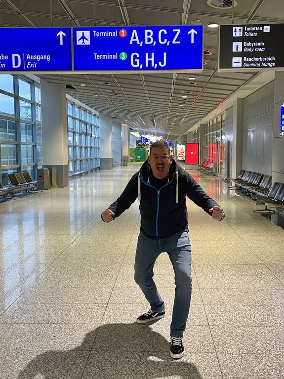 Jede große Reise braucht einen würdigen Abschluss, und auch hier enttäuschte die Organisation nicht. Der Abschied von der AIDAluna verlief perfekt von AIDA organisiert, pünktlich und absolut reibungslos. Auf die Minute genau stand unser Transferbus bereit. Ein letzter Blick zurück auf den strahlend weißen Kussmund an der Pier, dann rollten wir durch das sonnige Las Palmas in Richtung Airport. Am Flughafen angekommen, schloss sich der Kreis endgültig. Wo vor sieben Tagen unsere Mission begann, standen wir nun wieder – mit schwerem Gepäck, aber deutlich leichterem Kopf. Der Check-in bei Discover Airlines war unkompliziert. Auf dem Rollfeld erwartete uns der Airbus A320 im markanten weiß-blauen Design.